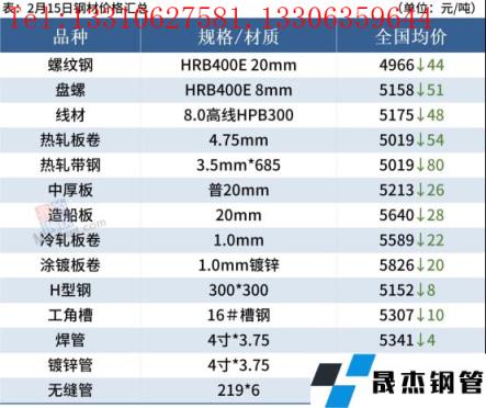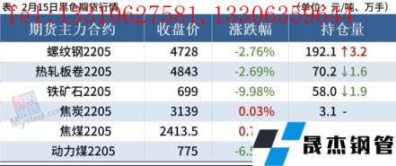 熱軋板卷:2月15日,全國24個(gè)主要城市4.75mm熱軋板卷均價(jià)5019元/噸,較上個(gè)交易日價(jià)格下跌54元/噸?,F(xiàn)貨市場早盤報(bào)價(jià)小幅走弱,跌后市場成交乏力,加之現(xiàn)貨成交不佳,午后現(xiàn)貨價(jià)格繼續(xù)下跌。從目前情況來看,前期邏輯低庫存低供應(yīng)雖然還在,但原料端雙焦和鐵礦的走弱,對市場的影響均大于基本面影響,導(dǎo)致了現(xiàn)貨回調(diào)。綜合來看,預(yù)計(jì)16日熱軋板卷價(jià)格或?qū)⑷鮿菡鹗庍\(yùn)行。