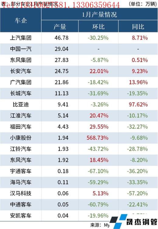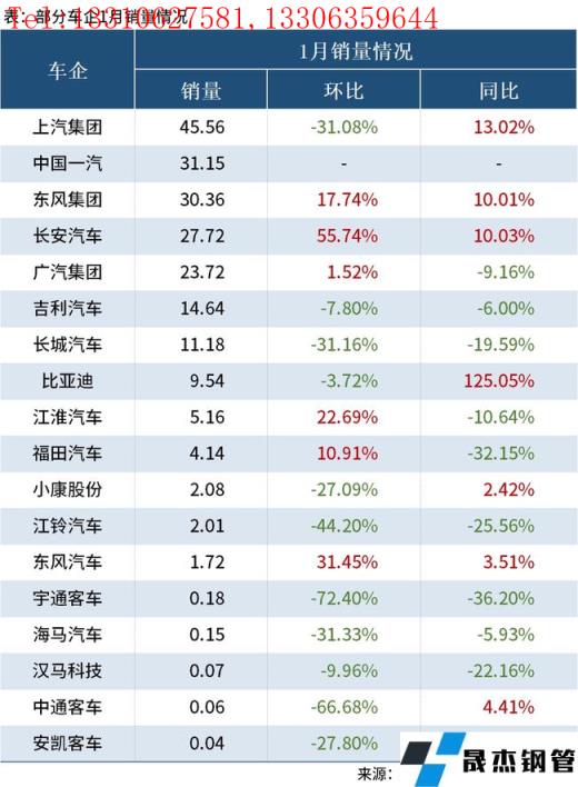 免責聲明:本網(wǎng)站(山東聊城晟杰無縫鋼管廠www.frdimp.com)刊載的“1月我國汽車產(chǎn)銷降幅明顯,多數(shù)車企呈現(xiàn)雙位數(shù)下跌”等均源于網(wǎng)絡(luò),版權(quán)歸原作者所有,且僅代表原作者觀點,本文所載信息僅供參考。轉(zhuǎn)載僅為學習與交流之目的,如無意中侵犯您的合法權(quán)益,請及時聯(lián)系刪除。本網(wǎng)站刊登此篇文章并不意味著本站贊同其觀點或證實其內(nèi)容的真實性,我們不對其科學性、嚴肅性等作任何形式的保證。如果侵犯了您的版權(quán),請盡快聯(lián)系我們予以撤銷,謝謝合作!