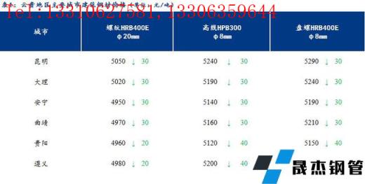 【今日價格】從云貴主要城市建筑厚壁無縫鋼管價格來看,今日云南建筑厚壁無縫鋼管市場價格下跌30元/噸,貴州建筑厚壁無縫鋼管市場價格下跌20-40元/噸。