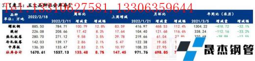 庫(kù)存方面,五大品種厚壁無(wú)縫鋼管總庫(kù)存春節(jié)后連續(xù)累增三周,環(huán)比上周增加110.41萬(wàn)噸,增幅5.0%。分品種看,建材庫(kù)存增加100.78萬(wàn)噸,增幅為7.0%;板材庫(kù)存增加9.63萬(wàn)噸,增幅1.3%。;分指標(biāo)看,無(wú)縫厚壁鋼管廠家?guī)齑姝h(huán)比減少23.07萬(wàn)噸,降幅3.5%;社會(huì)庫(kù)存環(huán)比增加133.48萬(wàn)噸,增幅8.7%。