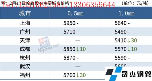 冷軋板卷:2月17日,全國(guó)24個(gè)主要城市1.0mm冷卷均價(jià)5573元/噸,較上個(gè)交易日下跌7元/噸。今日黑色系期貨盤(pán)面整體震蕩偏弱運(yùn)行,市場(chǎng)心態(tài)下滑,近兩日現(xiàn)貨市場(chǎng)價(jià)格均陸續(xù)回落,再加上市場(chǎng)“買漲不買跌”的情緒居高不下,今日整體成交一般。庫(kù)存方面,據(jù)不完全統(tǒng)計(jì),現(xiàn)冷軋無(wú)縫厚壁鋼管廠家?guī)齑?0.94萬(wàn)噸,周環(huán)比減少2.77萬(wàn)噸,社會(huì)庫(kù)存142.03萬(wàn)噸,周環(huán)比增加2.86萬(wàn)噸,周消費(fèi)量80.71萬(wàn)噸,環(huán)比增加13.02萬(wàn)噸。綜合來(lái)看,故預(yù)計(jì)18日國(guó)內(nèi)冷軋板卷價(jià)格或?qū)⒎€(wěn)中偏弱運(yùn)行。