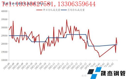 2022年2月17日(農(nóng)歷正月十七)全國162家冷軋成交量為20073噸,年后成交量最高值23649噸,周度平均成交量為19378噸,與9月份以來最低月均成交量21184噸相比,降幅為8%左右,可見當(dāng)期市場需求并未完全開啟。并且多數(shù)商家表示,除個(gè)別天數(shù)達(dá)到正常成交外,其余基本在正常5-6成水平。