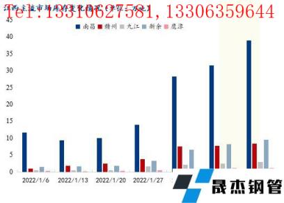 從本周各主流市場庫存走勢來看,各主流市場庫存均繼續(xù)累積。其中南昌市場庫存增幅最大,增幅達(dá)到23.20%;九江和新余市場庫存增幅在15%-17%之間;贛州和鷹潭市場庫存增幅在10%以下。目前來看,無縫厚壁鋼管廠家正常發(fā)貨,雖然省內(nèi)多數(shù)商家已經(jīng)開市,但只有少數(shù)工地零星啟動,市場終端需求整體偏弱,成交清淡,以投機(jī)鎖貨為主,市場庫存持續(xù)累積。