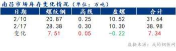 本周省內(nèi)建筑厚壁無縫鋼管社會庫存繼續(xù)呈明顯升庫態(tài)勢,建材市場庫存持續(xù)累庫。截止2月17日,據(jù)我網(wǎng)調(diào)研江西省主流市場包括南昌、贛州、九江、新余和鷹潭五大市場的樣本倉庫建筑厚壁無縫鋼管社會庫存總量為61.19萬噸,較上周增加9.78萬噸,增幅19.02%。