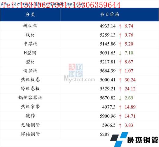 2月21日普鋼絕對(duì)價(jià)格指數(shù)變化:綜合指數(shù)5153.74,上漲14.05;螺紋鋼指數(shù)4933.14,上漲6.74;線(xiàn)材指數(shù)5259.13,上漲9.76;熱軋板卷指數(shù)5000.41,上漲30.24;冷軋板卷指數(shù)5529.21,上漲24.12;中厚板指數(shù)5145.86,上漲5.2。
