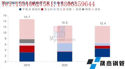 但2021年中國(guó)自俄羅斯的鎳板進(jìn)口銳減,全年進(jìn)4.61萬(wàn)噸,占精煉鎳總進(jìn)口量的17.65%,為2011年以來(lái)進(jìn)口量最低的一年,也是進(jìn)口量占比最低的一年。其原因在于2021年2月諾里爾斯克因礦場(chǎng)發(fā)生滲水事故而減產(chǎn)18.12%;加之2021年8-12月俄政府加收鎳產(chǎn)品出口稅;以及2021年挪威、住友、南非等其他進(jìn)口鎳板擠占國(guó)內(nèi)市場(chǎng),俄鎳進(jìn)口利潤(rùn)降低,國(guó)內(nèi)貿(mào)易商與俄方長(zhǎng)單簽訂受阻。