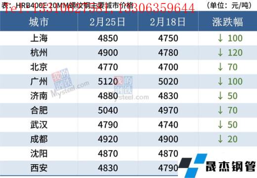 截至2月25日,全國主要城市20mm三級抗震螺紋鋼均價4869元/噸,周環(huán)比下跌53元/噸;8.0mmHPB300高線均價5067元/噸,周環(huán)比下跌58元/噸。
