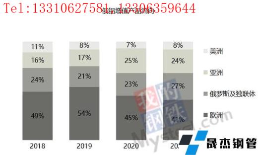 俄鋁公開(kāi)報(bào)告顯示,俄鋁增值產(chǎn)品(加工產(chǎn)品)主要流向?yàn)闅W洲、俄羅斯及獨(dú)聯(lián)體、亞洲及美洲。其中歐洲為主要出口市場(chǎng),2021年發(fā)往歐洲的增值產(chǎn)品量占總量的41%。自2018年美國(guó)制裁俄鋁事件發(fā)生后,俄鋁的出口流向有所調(diào)整,其中亞洲比重逐漸上升。