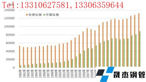1990年-2020年全球和中國煉鋼生鐵產(chǎn)量走勢(shì)圖
