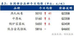 今日全國(guó)部分品種均價(jià)回升,整體漲幅為6~41元/噸。