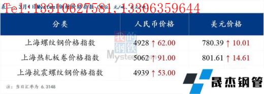免責聲明:本網(wǎng)站(山東聊城晟杰無縫鋼管廠www.frdimp.com)刊載的“2022年03月01日日報:鋼材_無縫鋼管價格指數(shù)上漲42.54元/噸”等均源于網(wǎng)絡,版權歸原作者所有,且僅代表原作者觀點,本文所載信息僅供參考。轉載僅為學習與交流之目的,如無意中侵犯您的合法權益,請及時聯(lián)系刪除。本網(wǎng)站刊登此篇文章并不意味著本站贊同其觀點或證實其內容的真實性,我們不對其科學性、嚴肅性等作任何形式的保證。如果侵犯了您的版權,請盡快聯(lián)系我們予以撤銷,謝謝合作!
