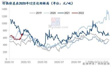 去年同期(2021年2月),由于汽車以及直接出口需求旺盛,冷軋強熱軋弱的局面明顯,冷軋總庫存累庫高度同比降幅達20%,冷熱價差也拉到新高,月均值達800元/噸以上。在去年同期冷軋“如火如荼”的行情襯托下,顯得今年的冷軋春天愈發(fā)“寒冷”。