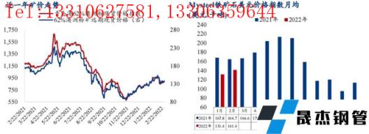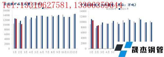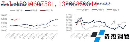 鐵礦石疏港:2月受限產(chǎn)限產(chǎn)影視,疏港大幅下降。截至2月25日,預(yù)計(jì)統(tǒng)計(jì)中國(guó)45港2月疏港量7364萬(wàn)噸,日均疏港環(huán)比下降50.5萬(wàn)噸/天至263萬(wàn)噸/天,降幅16.1%。本月疏港降幅主要華北和華東地區(qū),一方面是由于春節(jié)期間無(wú)縫厚壁鋼管廠家消化廠內(nèi)庫(kù)存為主,提貨需求下降,另一方面是由于部分港口冬奧會(huì)期間有環(huán)保限運(yùn)措施,無(wú)縫厚壁鋼管廠家提貨受阻導(dǎo)致。3月來(lái)看,隨著無(wú)縫厚壁鋼管廠家復(fù)產(chǎn)和限運(yùn)限產(chǎn)得相對(duì)放松,疏港逐漸恢復(fù)提高,3月疏港或能恢復(fù)到300-305萬(wàn)噸/天。