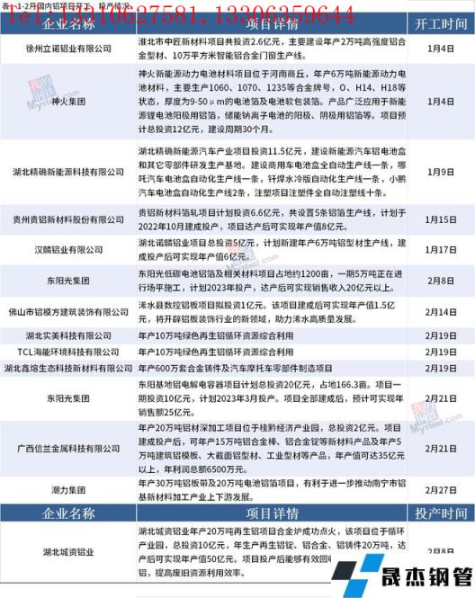免責(zé)聲明:本網(wǎng)站(山東聊城晟杰無縫鋼管廠www.frdimp.com)刊載的“1-2月國內(nèi)鋁項目開工、投產(chǎn)情況”等均源于網(wǎng)絡(luò),版權(quán)歸原作者所有,且僅代表原作者觀點,本文所載信息僅供參考。轉(zhuǎn)載僅為學(xué)習(xí)與交流之目的,如無意中侵犯您的合法權(quán)益,請及時聯(lián)系刪除。本網(wǎng)站刊登此篇文章并不意味著本站贊同其觀點或證實其內(nèi)容的真實性,我們不對其科學(xué)性、嚴(yán)肅性等作任何形式的保證。如果侵犯了您的版權(quán),請盡快聯(lián)系我們予以撤銷,謝謝合作!