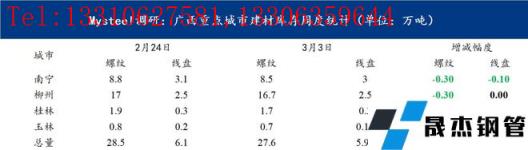 本周廣西地區(qū)螺紋資源社會(huì)庫存整體下降,商家出貨好轉(zhuǎn)。進(jìn)入3月,厚壁無縫鋼管原料消息面有所放寬,需求復(fù)蘇,整個(gè)黑色系期貨近期首次出現(xiàn)全面大幅拉漲,市場看漲氛圍濃厚,給予市場較大的操作空間。同時(shí),在期貨的刺激下廣西本地需求進(jìn)一步釋放,周二商家迎來了出貨拐點(diǎn),當(dāng)天成交爆發(fā)式增長,為后續(xù)成交奠定基礎(chǔ)。從資源分配來看,南寧區(qū)域由于部分商家的資源從廠里直發(fā)進(jìn)入工地,進(jìn)入倉庫資源相對有限,因而南寧庫存出現(xiàn)小幅度下降。同時(shí),柳鋼本部生產(chǎn)飽和度較低,廣西投放資源有限,柳州社會(huì)庫存也出現(xiàn)不增反降局面。價(jià)格方面,無縫厚壁鋼管廠家出廠價(jià)推漲及時(shí),本周截至周四廣西推漲90元/噸,但從周邊市場來看,廣西價(jià)格處于低位,周邊資源流入利潤空間較少,整體流入量有所下降。截至目前,廣西市場庫存建筑厚壁無縫鋼管33.58萬噸,較上周相比減少1.02萬噸。