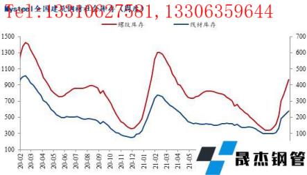 三、建筑厚壁無縫鋼管總庫存增加 累庫幅度明顯不及往年