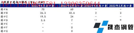 港口5:東北大港口,1月2月厚壁無縫鋼管總計(jì)出口量約70萬噸,較2021年同期小幅減少1.4萬噸。
