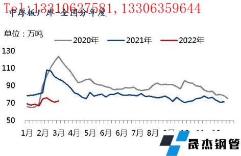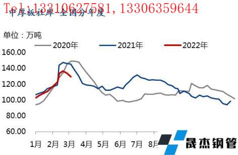 另一方面,21年四季度末無縫厚壁鋼管廠家品種鋼訂單轉(zhuǎn)好,很多無縫厚壁鋼管廠家對內(nèi)部品種結(jié)構(gòu)進行了調(diào)整,以減少流通材,增加直供量為主,這一點也從我們節(jié)前一些品種鋼價格漲幅也能看出,包括橋梁板、高建鋼,Q355C, Q355D板等等,這些品種節(jié)前價格漲幅均高于普板和低合金板。所以進一步導(dǎo)致市場流通材的量在減少,這一點,也可以從我們今年春節(jié)后的社會庫存能夠得到驗證。今年春節(jié)后的中板社會庫存大幅低于去年同期,還有一方面原因是,今年大家冬儲的意愿非常低,投機性訂貨量較去年有明顯下降,多以協(xié)議量到貨為主。