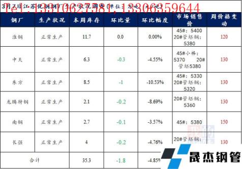 江蘇優(yōu)特?zé)o縫厚壁鋼管廠家棒材總庫(kù)存35.3萬(wàn)噸,較上周下降1.8萬(wàn)噸,環(huán)比降4.85%,較去年同期下降4.68萬(wàn)噸,同比降11.71%,目前江蘇優(yōu)特?zé)o縫厚壁鋼管廠家均正常生產(chǎn)。