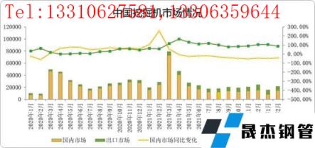 據(jù)市場(chǎng)情況了解到,2月份國(guó)內(nèi)市場(chǎng)預(yù)估銷量15000臺(tái),國(guó)內(nèi)市場(chǎng)銷量增速降幅小幅收窄;出口市場(chǎng)預(yù)估銷量7000臺(tái),增速87%左右。按照三月份的調(diào)研數(shù)據(jù)顯示,預(yù)計(jì)國(guó)內(nèi)工程機(jī)械市場(chǎng)仍然按照年度周期性進(jìn)入旺季。一季度的年度旺季的起始點(diǎn)在2月15日左右市場(chǎng)才有所啟動(dòng),2月整體的挖掘機(jī)市場(chǎng)情況環(huán)比情況好轉(zhuǎn),節(jié)后需求逐步恢復(fù),基建下行壓力緩解。當(dāng)前受國(guó)際形勢(shì)影響,挖機(jī)機(jī)的市場(chǎng)國(guó)內(nèi)外分配情況情況存在變動(dòng),整體趨勢(shì)走向還是向上為主。