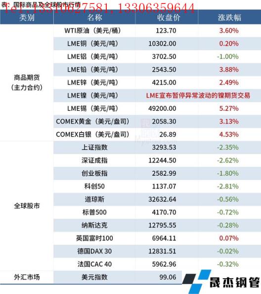 免責(zé)聲明:本網(wǎng)站(山東聊城晟杰無(wú)縫鋼管廠www.frdimp.com)刊載的“2022年03月09日早讀:LME緊急切斷鎳期貨交易,美宣布禁止進(jìn)口俄羅斯石油”等均源于網(wǎng)絡(luò),版權(quán)歸原作者所有,且僅代表原作者觀點(diǎn),本文所載信息僅供參考。轉(zhuǎn)載僅為學(xué)習(xí)與交流之目的,如無(wú)意中侵犯您的合法權(quán)益,請(qǐng)及時(shí)聯(lián)系刪除。本網(wǎng)站刊登此篇文章并不意味著本站贊同其觀點(diǎn)或證實(shí)其內(nèi)容的真實(shí)性,我們不對(duì)其科學(xué)性、嚴(yán)肅性等作任何形式的保證。如果侵犯了您的版權(quán),請(qǐng)盡快聯(lián)系我們予以撤銷,謝謝合作!