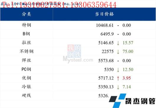 3月9日普鋼絕對(duì)價(jià)格指數(shù)變化:綜合指數(shù)5270.61,下跌34.55;螺紋鋼指數(shù)5005.67,下跌31.0;線材指數(shù)5342.07,下跌29.72;熱軋板卷指數(shù)5181.27,下跌64.08;冷軋板卷指數(shù)5638.63,下跌25.48;中厚板指數(shù)5242.43,下跌21.42。