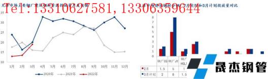 盤線方面,據(jù)我網(wǎng)對京津冀區(qū)域盤線無縫厚壁鋼管廠家投放量調(diào)研,2月份盤線實(shí)際投放量19.6萬噸,環(huán)比增加2萬噸,3月投放量計(jì)劃20.4萬噸。1、河鋼樂鋼盤螺產(chǎn)線不定期生產(chǎn),且以品種線為主,3月盤線計(jì)劃生產(chǎn)3萬噸;2、九江無縫厚壁鋼管廠家品種線生產(chǎn)為主,暫不計(jì)劃盤線;3、東華無縫厚壁鋼管廠家兩條盤螺產(chǎn)線在產(chǎn),但以品種線生產(chǎn)為主,2月盤線計(jì)劃產(chǎn)量僅3萬噸。