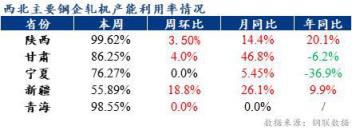 本周對西北區(qū)域15家建筑厚壁無縫鋼管生產(chǎn)企業(yè)同口徑調(diào)查顯示,目前西北區(qū)域15家鋼鐵生產(chǎn)企業(yè)38座高爐實際開工高爐37座,新疆區(qū)域新增4座高爐復產(chǎn),高爐開工率為67.96%,周環(huán)比提升5.28%;高爐實際產(chǎn)量71.2萬噸,周環(huán)比增加7.28萬噸;高爐產(chǎn)能利用率85.88%,周環(huán)比提高8.78%。