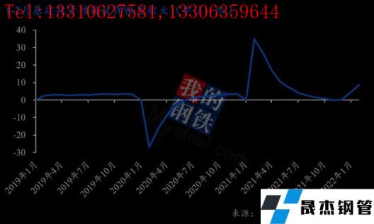 房地產數據表現(xiàn)超預期,而且改善程度之大可能是大多數人未預料到的。全國房地產開發(fā)投資同比增長3.7%,施工面積同比增長1.8%;商品房銷售面積同比下降9.6%,新開工面積同比下降12.2%。去年12月,施工面積和新開工面積同比增速均降至-30%以下,此次施工面積同比轉正,且商品房銷售面積和新開工面積同比降速收窄幅度大。另外,竣工面積同比增速確意外地轉負。這些數據與我們觀察到的高頻數據和得到的調研結論(見附錄)表現(xiàn)具有較大差異。同時,國房景氣指數已經止住自去年5月以來的下跌趨勢,1-2月該指數環(huán)比去年12月略微回升。我們提示,國房景氣指數是觀察房地產行業(yè)和厚壁無縫鋼管價格的重要先行指標,若該指數反映情況真實,房地產行業(yè)有望在2季度末之前“提前”企穩(wěn),或將對厚壁無縫鋼管價格形成一定的支撐。