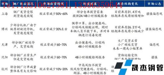 天津市場(chǎng):近期疫情肆起,天津昨日新增本土病例51例,涉及區(qū)域偏多,范圍偏廣,部分無(wú)縫厚壁鋼管廠家被迫停產(chǎn),交貨延期。各地交通受阻,據(jù)客戶反饋,運(yùn)費(fèi)上漲幅度在20%左右。當(dāng)?shù)卣叻矫?,全部返津人員實(shí)行查驗(yàn)“一證一碼一卡”政策,即對(duì)來(lái)返津人員在鐵路、機(jī)場(chǎng)、道路客運(yùn)場(chǎng)站和公路通道卡口查驗(yàn)48小時(shí)核酸陰性證明、健康碼綠碼和通信行程卡。庫(kù)存方面,目前大廠交貨正常,商家到庫(kù)資源在6-8成左右,小廠由于疫情資源無(wú)法正常交貨,只能順延交貨。貿(mào)易商反饋疫情期間成交乏力,預(yù)計(jì)未來(lái)一周會(huì)出現(xiàn)小幅累庫(kù)的現(xiàn)象。心態(tài)方面,由于近期疫情擴(kuò)散較嚴(yán)重,且市場(chǎng)成交持續(xù)處于正常偏低水平,商家心態(tài)逐漸偏悲觀。