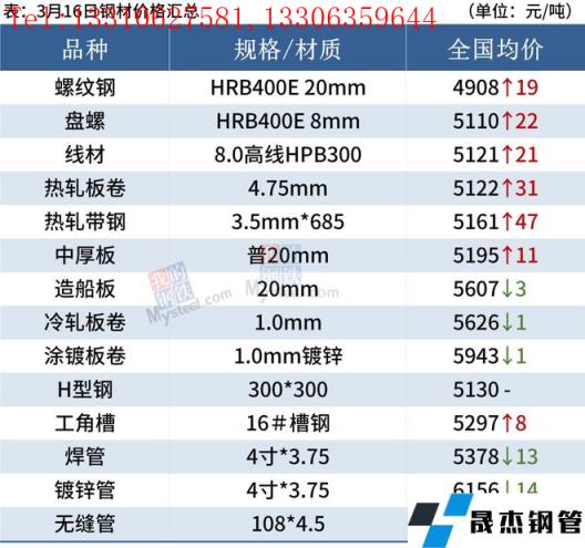建筑厚壁無縫鋼管:3月16日,全國31個(gè)主要城市20mm三級抗震螺紋鋼均價(jià)4908元/噸,較上個(gè)交易日漲19元/噸。短期來看,在宏觀消息刺激下,市場悲觀情緒明顯修復(fù),或?qū)蝇F(xiàn)貨市場迎來反彈,至于反彈高度,仍需關(guān)注后期供需面變化,如北方地區(qū)近期高爐集中復(fù)產(chǎn)以及疫情對于需求端的影響。因此預(yù)期17日國內(nèi)建筑厚壁無縫鋼管價(jià)格或?qū)⒗^續(xù)趨強(qiáng)運(yùn)行為主。
