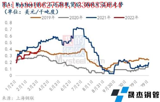 進(jìn)入2022年,鐵礦石遠(yuǎn)期現(xiàn)貨62.5%塊礦溢價(jià)(以下簡(jiǎn)稱遠(yuǎn)期塊礦溢價(jià))大幅反彈,由1月初的0.1945美元/干噸度漲至目前的0.4465美元/干噸度,累計(jì)上漲0.252美元/干噸度,漲幅130%(圖一)。其中,一季度漲幅接近去年同期水平但遠(yuǎn)高于2020年同期。本文主要從基本面、焦炭、替代品三個(gè)因素來(lái)分析此輪塊礦溢價(jià)大幅上升的原因,同時(shí)對(duì)其短期走勢(shì)做出預(yù)判。
