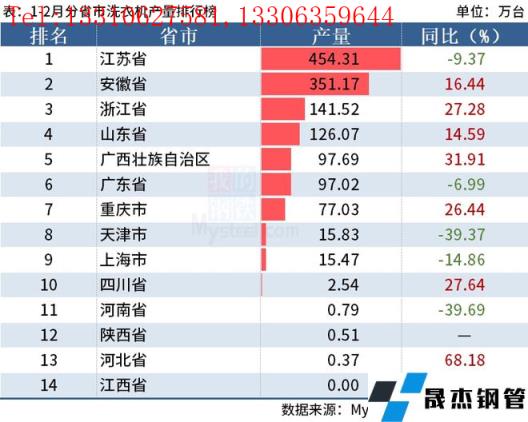 從分省市數(shù)據(jù)來(lái)看,1-2月共有4個(gè)省市洗衣機(jī)產(chǎn)量超100萬(wàn)臺(tái),其中江蘇省以產(chǎn)量454.31萬(wàn)臺(tái)排名第一,安徽省產(chǎn)量351.17萬(wàn)臺(tái)排名第二,浙江省產(chǎn)量141.52萬(wàn)臺(tái)排名第三。