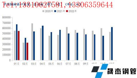 海關(guān)總署數(shù)據(jù)顯示:2022年2月我國涂層板(帶)出口總量共計33.26萬噸,月環(huán)比降幅39.36%,年同比下降21.15%。2022年1-2月我國涂層板(帶)出口總量共計88.0991萬噸,年同比下降19.51%。