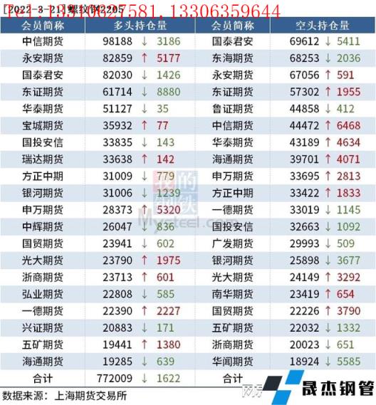 各品種持倉情況具體如下: