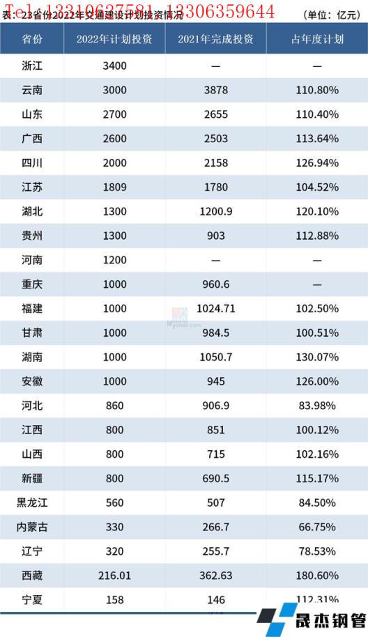 免責(zé)聲明:本網(wǎng)站(山東聊城晟杰無(wú)縫鋼管廠www.frdimp.com)刊載的“23省份2022年交通建設(shè)計(jì)劃投資近3萬(wàn)億元”等均源于網(wǎng)絡(luò),版權(quán)歸原作者所有,且僅代表原作者觀點(diǎn),本文所載信息僅供參考。轉(zhuǎn)載僅為學(xué)習(xí)與交流之目的,如無(wú)意中侵犯您的合法權(quán)益,請(qǐng)及時(shí)聯(lián)系刪除。本網(wǎng)站刊登此篇文章并不意味著本站贊同其觀點(diǎn)或證實(shí)其內(nèi)容的真實(shí)性,我們不對(duì)其科學(xué)性、嚴(yán)肅性等作任何形式的保證。如果侵犯了您的版權(quán),請(qǐng)盡快聯(lián)系我們予以撤銷,謝謝合作!