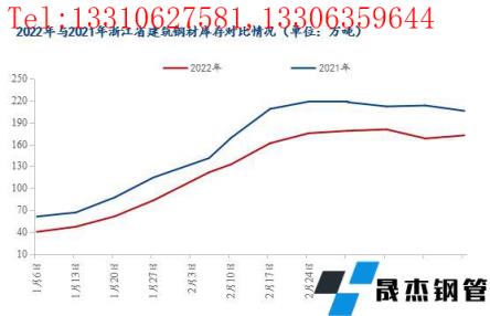 目前浙江省內主流市場建筑厚壁無縫鋼管庫存低于去年同期水平。具體來看,本周浙江省內主要市場建筑厚壁無縫鋼管總庫存為172.39萬噸,低于去年同期33.53萬噸,年同比降幅16.28%。
