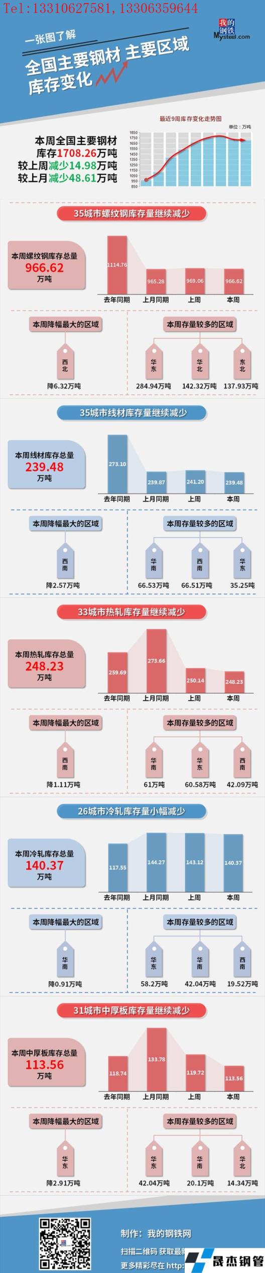 本周,全國(guó)主要厚壁無(wú)縫鋼管社會(huì)庫(kù)存1708.26萬(wàn)噸,較上周減少14.98萬(wàn)噸,較上月減少48.61萬(wàn)噸;螺紋鋼庫(kù)存總量966.62萬(wàn)噸。