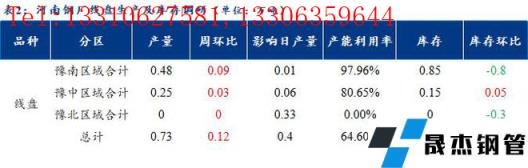 1、調(diào)研數(shù)據(jù)顯示,統(tǒng)計的河南地區(qū)10家建筑厚壁無縫鋼管樣本無縫厚壁鋼管廠家中,河南省無縫厚壁鋼管廠家線盤日均產(chǎn)量0.73萬噸,較上周小幅增加0.12萬噸;檢修/限產(chǎn)影響建材日產(chǎn)量為0.4萬噸,產(chǎn)能利用率64.6%,較上周上升10.62%。