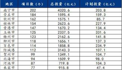 根據(jù)這些數(shù)據(jù)可以看到,從總投資額來看,南寧、防城港、桂林成為重點(diǎn)建設(shè)的城市,從項(xiàng)目數(shù)量來說,南寧、崇左、欽州成為最多的3個(gè)城市,從2022年的投資額來看,玉林、百色、桂林成為重點(diǎn)建設(shè)城市。