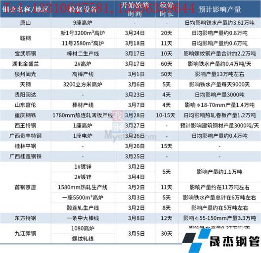 免責(zé)聲明:本網(wǎng)站(山東聊城晟杰無(wú)縫鋼管廠www.frdimp.com)刊載的“3月各地?zé)o縫鋼管廠家停產(chǎn)檢修匯總(附產(chǎn)量影響)”等均源于網(wǎng)絡(luò),版權(quán)歸原作者所有,且僅代表原作者觀點(diǎn),本文所載信息僅供參考。轉(zhuǎn)載僅為學(xué)習(xí)與交流之目的,如無(wú)意中侵犯您的合法權(quán)益,請(qǐng)及時(shí)聯(lián)系刪除。本網(wǎng)站刊登此篇文章并不意味著本站贊同其觀點(diǎn)或證實(shí)其內(nèi)容的真實(shí)性,我們不對(duì)其科學(xué)性、嚴(yán)肅性等作任何形式的保證。如果侵犯了您的版權(quán),請(qǐng)盡快聯(lián)系我們予以撤銷,謝謝合作!