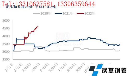 眾所周知,3月份豆粕價格持續(xù)偏強,多次創(chuàng)新高?;ㄉ蓛r格在其帶動下強勢上漲,截至今日,花生粕均價為4600元/噸,相較春節(jié)前3450元/噸上漲1050元/噸,漲幅高達30.43%;與去年同期3500元/噸相比上漲1000元/噸,漲幅28.57%,創(chuàng)下近三年新高。而春節(jié)前由于花生油消費情況一般,油廠加工量較少,導致花生粕庫存低位運行,使其高價更加有所支撐,油廠見狀紛紛選擇提升壓榨量,也一定程度上帶動了原料花生的行情。但目前豆粕市場已逐步回歸理性,價格觸頂回落,花生粕價格隨之下行可能性較大。一旦影響到壓榨利潤,油廠的對花生的收購積極性也會下降,拖累花生價格。