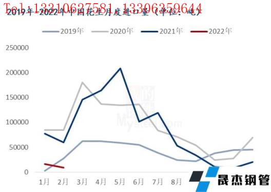 2022年1-2月份,進口花生總量為24966噸,與去年同期相比減少112458噸,降幅為81.83%。在油廠榨力明顯好轉(zhuǎn)的情況下,對國內(nèi)花生需求量持續(xù)增加。進入4-5月份,預(yù)計進口花生將集中到港,或?qū)⒁种茋a(chǎn)花生行情,油廠對于國內(nèi)花生的需求在一定程度上將有所減少。