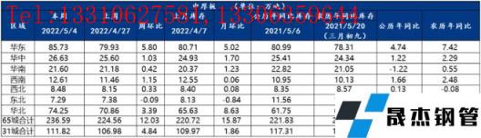 庫(kù)存方面:據(jù)統(tǒng)計(jì),建材方面,以螺紋鋼為例,從三大區(qū)域來(lái)看,本周華東和南方分別環(huán)比增加8.5萬(wàn)噸和5.2萬(wàn)噸,北方環(huán)比減少10.08萬(wàn)噸;從七大區(qū)域來(lái)看,除華北、東北和西北,其余各區(qū)域均有不同程度增加。從城市來(lái)看,杭州、南京、南昌、武漢等為主要增庫(kù)城市,北京、蘭州、貴陽(yáng)等為主要降庫(kù)城市。其中國(guó)內(nèi)主要城市螺紋鋼、線材總庫(kù)存為1096.69萬(wàn)噸,較上周(2022年4月29日)增加2.18萬(wàn)噸,增幅為0.20%。同比減少30.10萬(wàn)噸或減幅為0.20%。