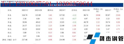 表1:全國(guó)建筑厚壁無(wú)縫鋼管庫(kù)存匯總(4.8-4.15)