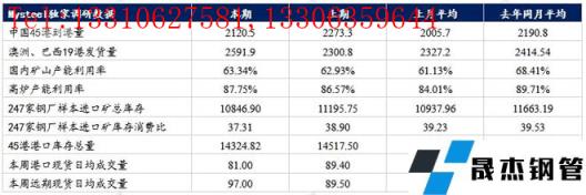 本周統(tǒng)計中國45港鐵礦石庫存總量14324.82萬噸,環(huán)比降庫192.68萬噸。日均疏港量315.66萬噸,環(huán)比增17.88萬噸。目前在港船舶數(shù)89條較上期降20條。統(tǒng)計47港鐵礦石庫存總量14922.82萬噸,47港日均疏港量325.06萬噸。