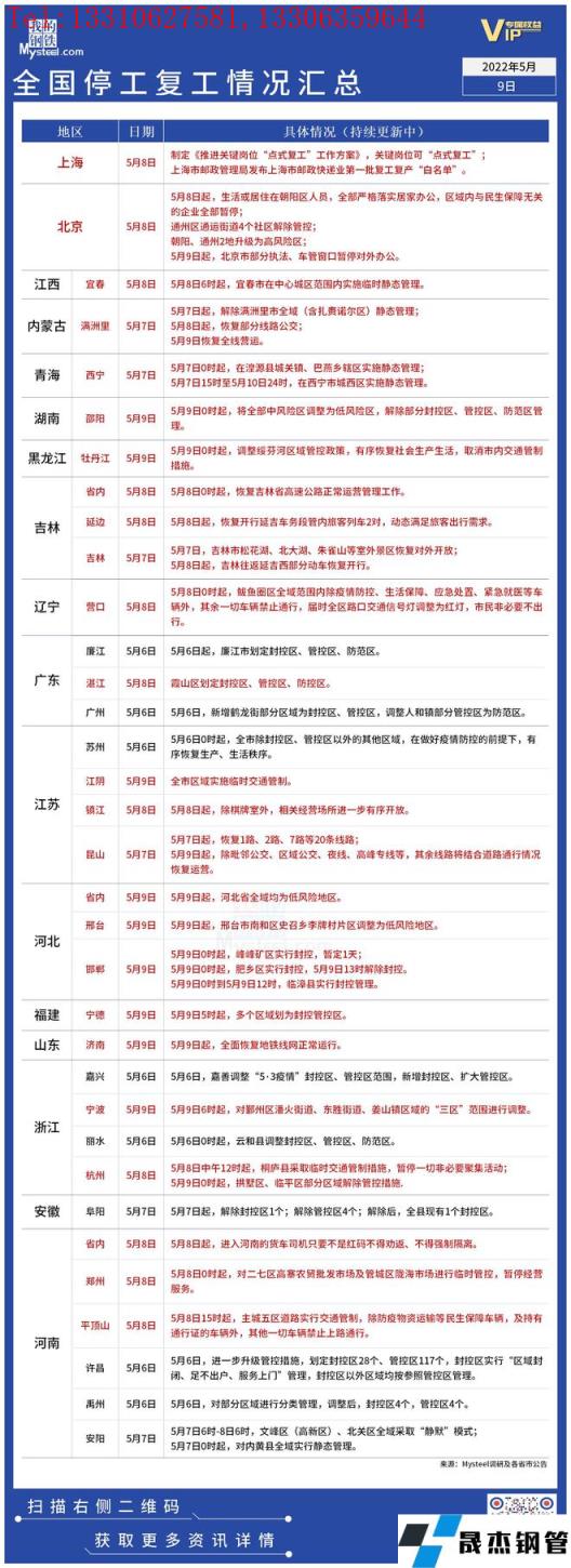 免責(zé)聲明:本網(wǎng)站(山東聊城晟杰無縫鋼管廠www.frdimp.com)刊載的“疫情影響丨全國停工復(fù)工情況匯總(5月9日)”等均源于網(wǎng)絡(luò),版權(quán)歸原作者所有,且僅代表原作者觀點(diǎn),本文所載信息僅供參考。轉(zhuǎn)載僅為學(xué)習(xí)與交流之目的,如無意中侵犯您的合法權(quán)益,請(qǐng)及時(shí)聯(lián)系刪除。本網(wǎng)站刊登此篇文章并不意味著本站贊同其觀點(diǎn)或證實(shí)其內(nèi)容的真實(shí)性,我們不對(duì)其科學(xué)性、嚴(yán)肅性等作任何形式的保證。如果侵犯了您的版權(quán),請(qǐng)盡快聯(lián)系我們予以撤銷,謝謝合作!