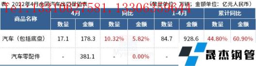 免責(zé)聲明:本網(wǎng)站(山東聊城晟杰無(wú)縫鋼管廠www.frdimp.com)刊載的“海關(guān)總署:4月中國(guó)出口汽車(chē)17.1萬(wàn)輛,同比增長(zhǎng)10.32%”等均源于網(wǎng)絡(luò),版權(quán)歸原作者所有,且僅代表原作者觀點(diǎn),本文所載信息僅供參考。轉(zhuǎn)載僅為學(xué)習(xí)與交流之目的,如無(wú)意中侵犯您的合法權(quán)益,請(qǐng)及時(shí)聯(lián)系刪除。本網(wǎng)站刊登此篇文章并不意味著本站贊同其觀點(diǎn)或證實(shí)其內(nèi)容的真實(shí)性,我們不對(duì)其科學(xué)性、嚴(yán)肅性等作任何形式的保證。如果侵犯了您的版權(quán),請(qǐng)盡快聯(lián)系我們予以撤銷(xiāo),謝謝合作!