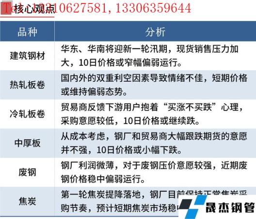 5月9日,國內(nèi)厚壁無縫鋼管市場價(jià)格全線下跌,唐山普方坯出廠價(jià)跌30報(bào)4680元/噸。9日黑色期貨全線重挫,市場恐慌情緒蔓延,交投氛圍冷清,商家拋售情緒濃。