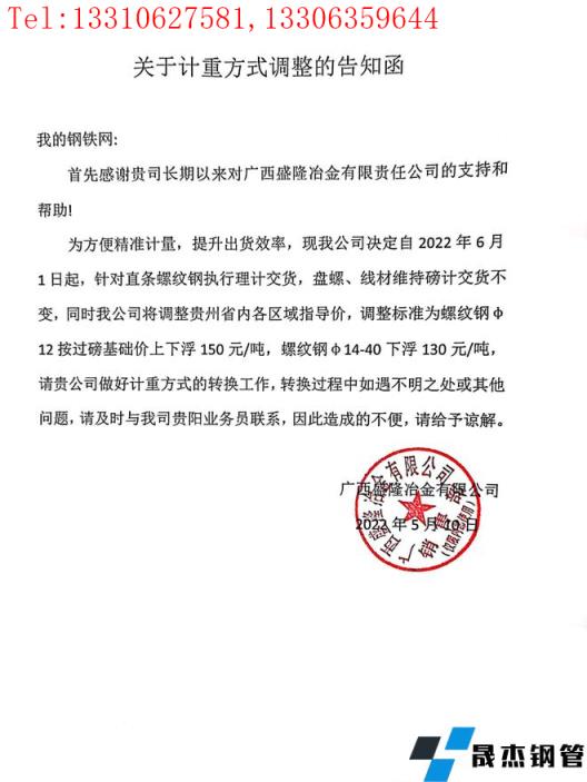 免責(zé)聲明:本網(wǎng)站(山東聊城晟杰無(wú)縫鋼管廠www.frdimp.com)刊載的“廣西盛隆冶金有限公司關(guān)于對(duì)貴州區(qū)域計(jì)重方式調(diào)整的告知函”等均源于網(wǎng)絡(luò),版權(quán)歸原作者所有,且僅代表原作者觀點(diǎn),本文所載信息僅供參考。轉(zhuǎn)載僅為學(xué)習(xí)與交流之目的,如無(wú)意中侵犯您的合法權(quán)益,請(qǐng)及時(shí)聯(lián)系刪除。本網(wǎng)站刊登此篇文章并不意味著本站贊同其觀點(diǎn)或證實(shí)其內(nèi)容的真實(shí)性,我們不對(duì)其科學(xué)性、嚴(yán)肅性等作任何形式的保證。如果侵犯了您的版權(quán),請(qǐng)盡快聯(lián)系我們予以撤銷,謝謝合作!